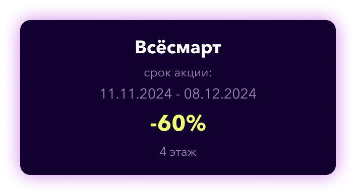 С 4 по 11 декабря 2024 года призы будут вручаться на столе информации в центральном атриуме (2 этаж).